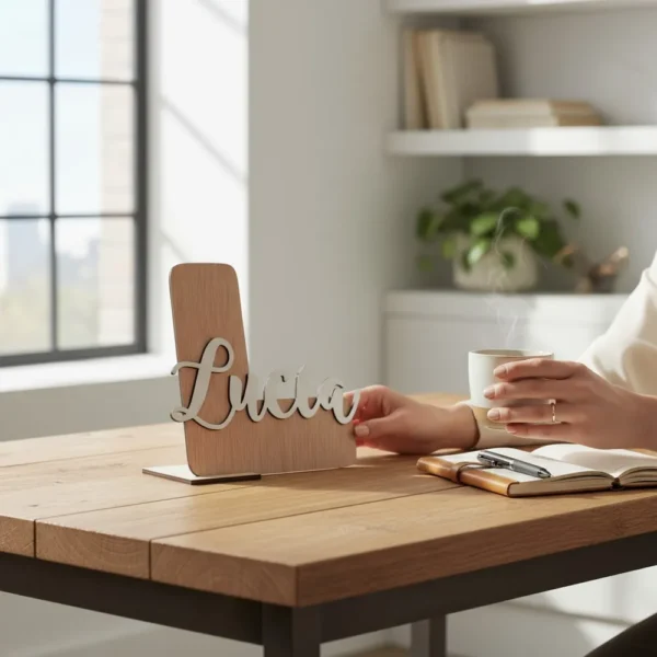 Dale estilo a tu espacio con tu nombre en madera. Un toque único, elegante y lleno de personalidad. 🌿